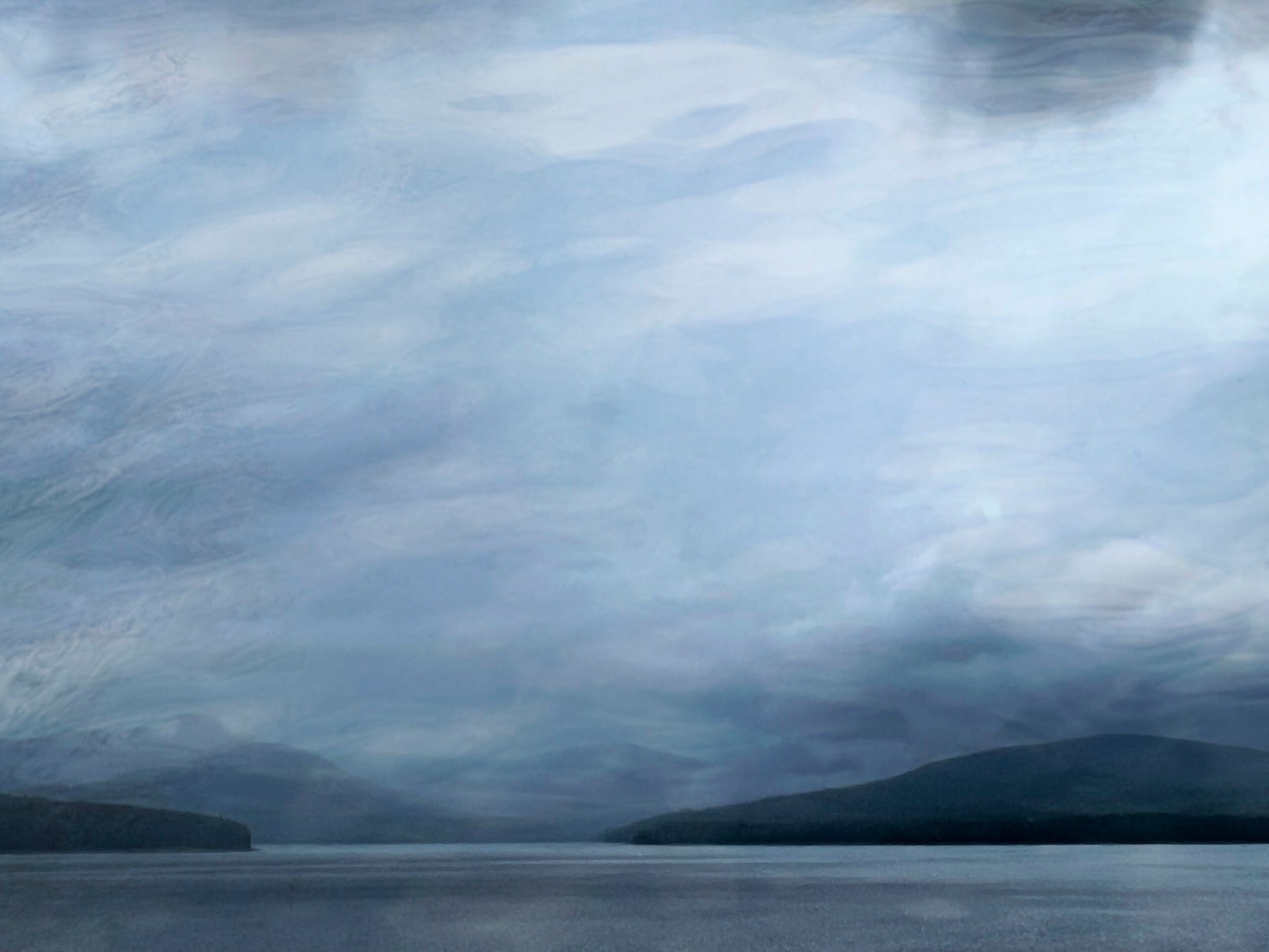 A blustery winter day at the Ashokan Reservoir. Multiple exposures enhance the atmospheric effect of wind and water.