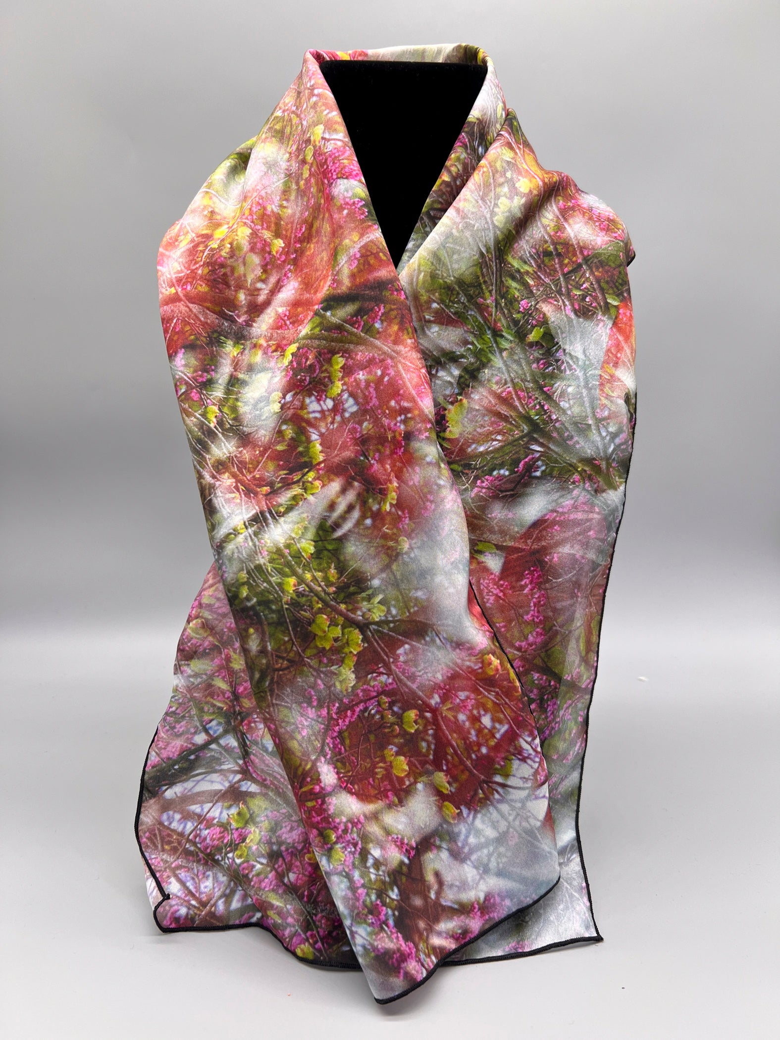 • Pink, green and yellow buds create a delicate springtime pattern in this scarf designed from one of my abstract nature photos