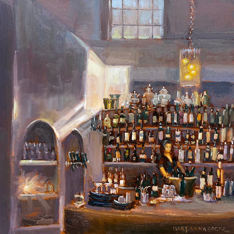 This is a scene of the colorful bar at Goodnight Restaurant. The shaft of light pouring through the window lent a warm note to the overall image.