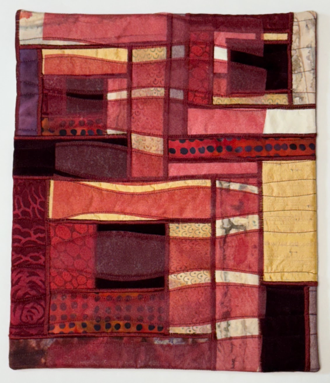 This modern design with silks, cottons and organza offers a bright pop of color. Machine quilted, it is perfect for any space in your home.