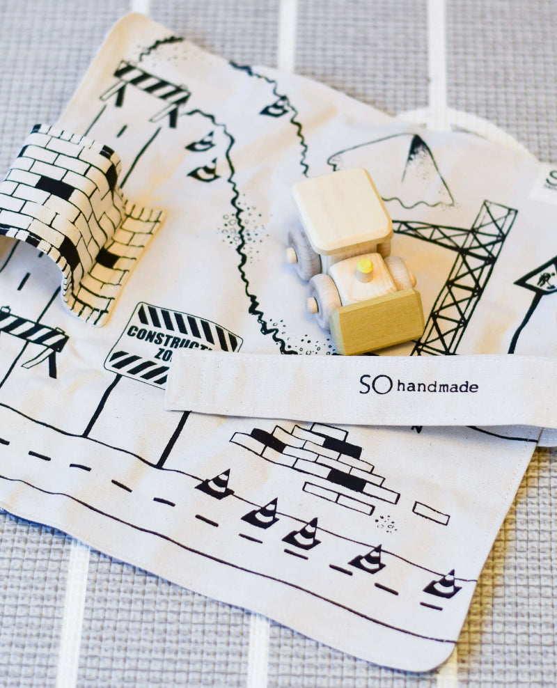 Build your child’s imagination no matter where you go. This construction play mat becomes a portable construction zone, immersing kids in a world of tunnels, cranes, road signs, and cones.