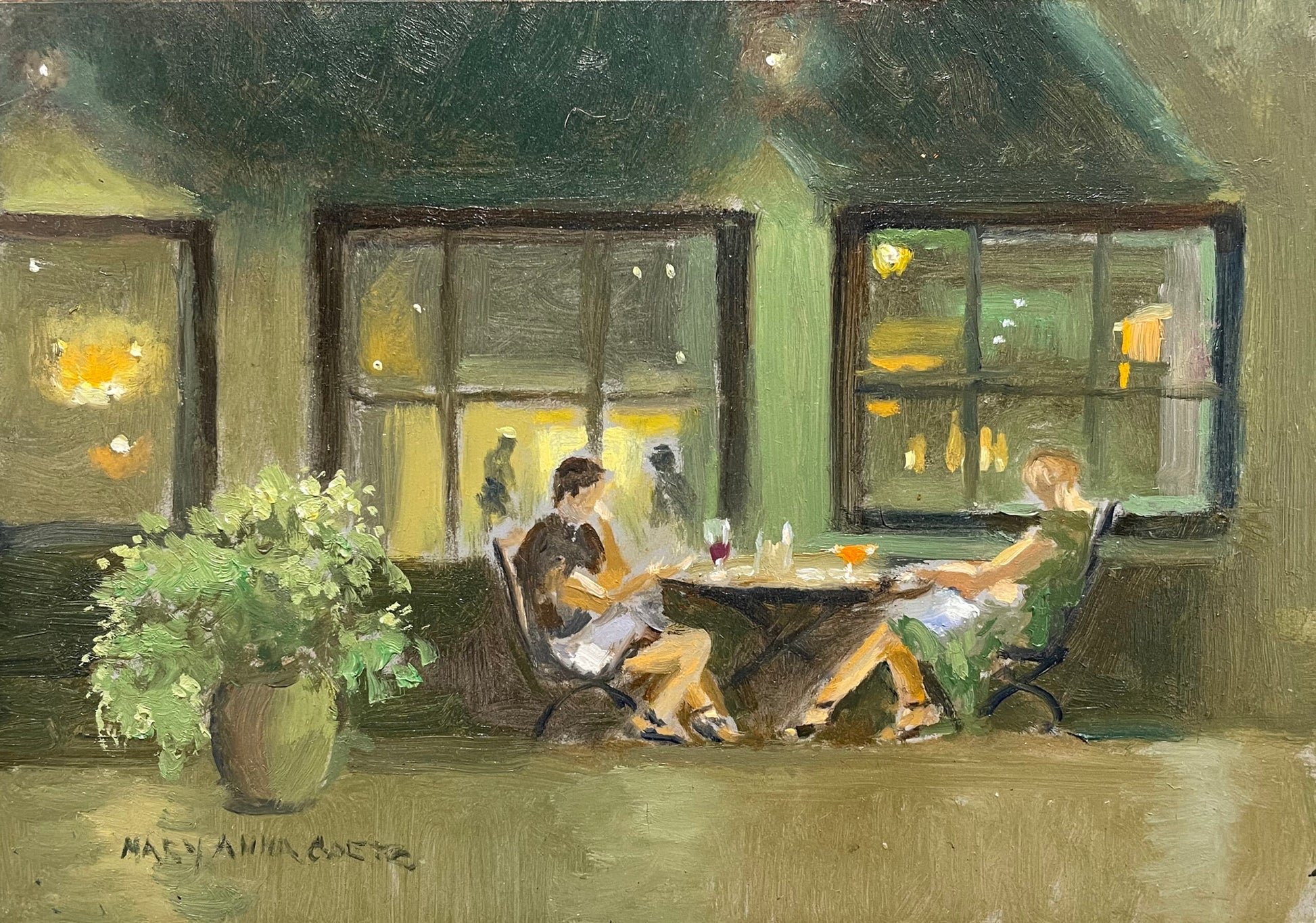In this scene a couple enjoys an al fresco meal on the deck at Sylvia's Restaurant in Woodstock.