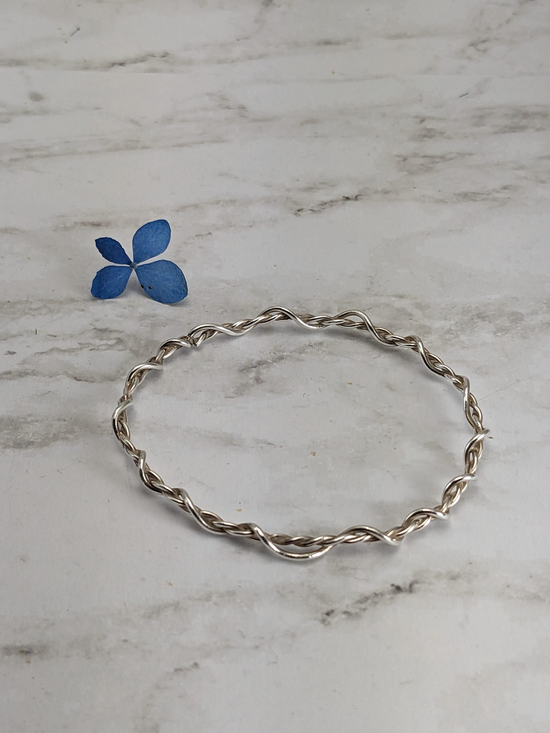 This double twist bangle is so fun to wear and works great alone or stacked with other bangles. The unique double twist design will make it stand out and be noticed.