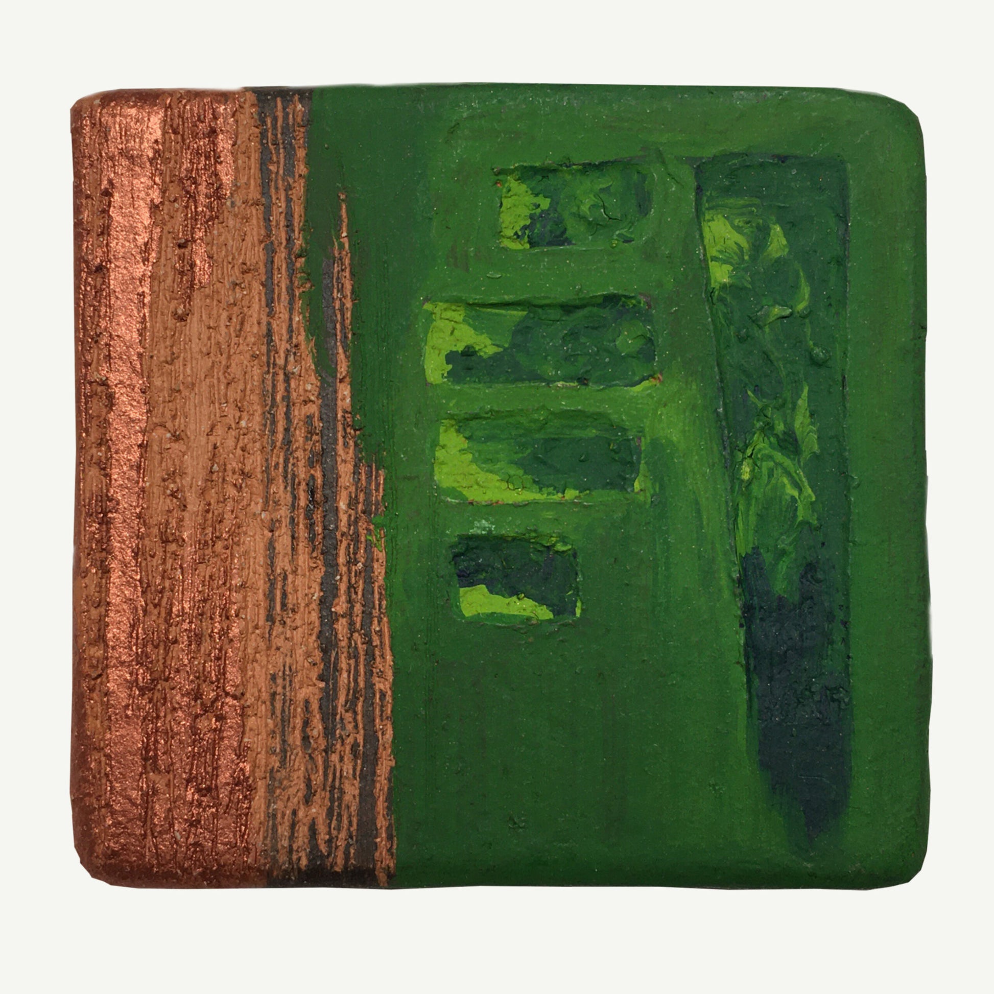 DREAM ONE is a unique, one-of-a kind mini oil painting with copper accent. This lightweight statement pin is backed in leather.