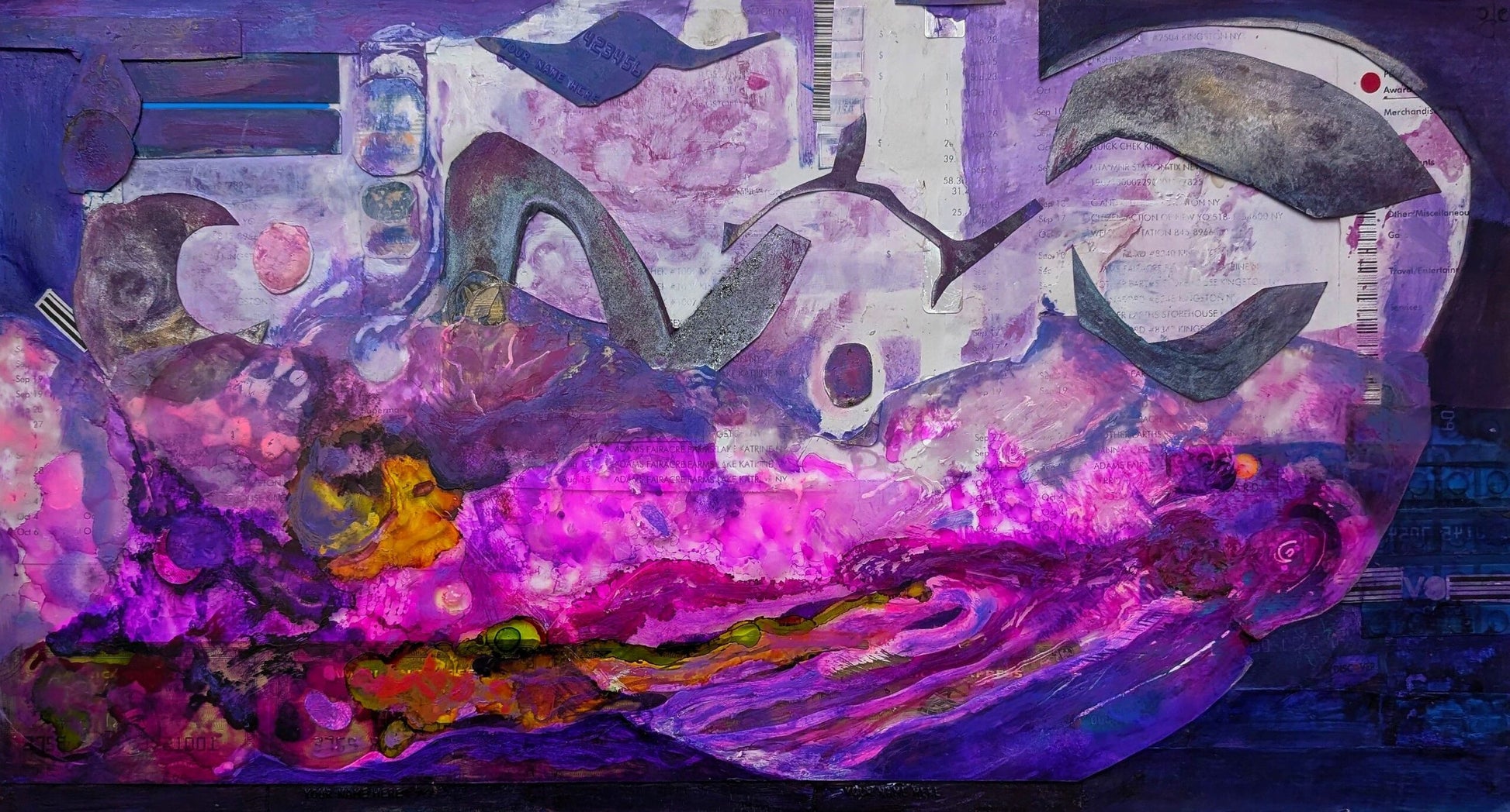 • Archival digital print of mixed media collage. The lower half was created using alcohol ink on clear plastic
