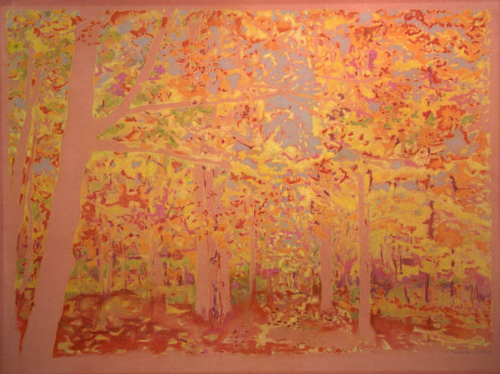 For almost 40 years Paul and I lived on a former farm with wooded acreage. We loved it dearly, even calling it our "Little Eden" but, as we got older, caring for it became increasingly burdensome until we eventually thought it was wiser to move to Kingston. That decision having been reached, I went around the place creating many images of it. This one of a grove of trees by the side of our house is now a keepsake which gives me much pleasure. The name of this pastel and the next is taken from a line in a poem by Gerard Manley Hopkins.