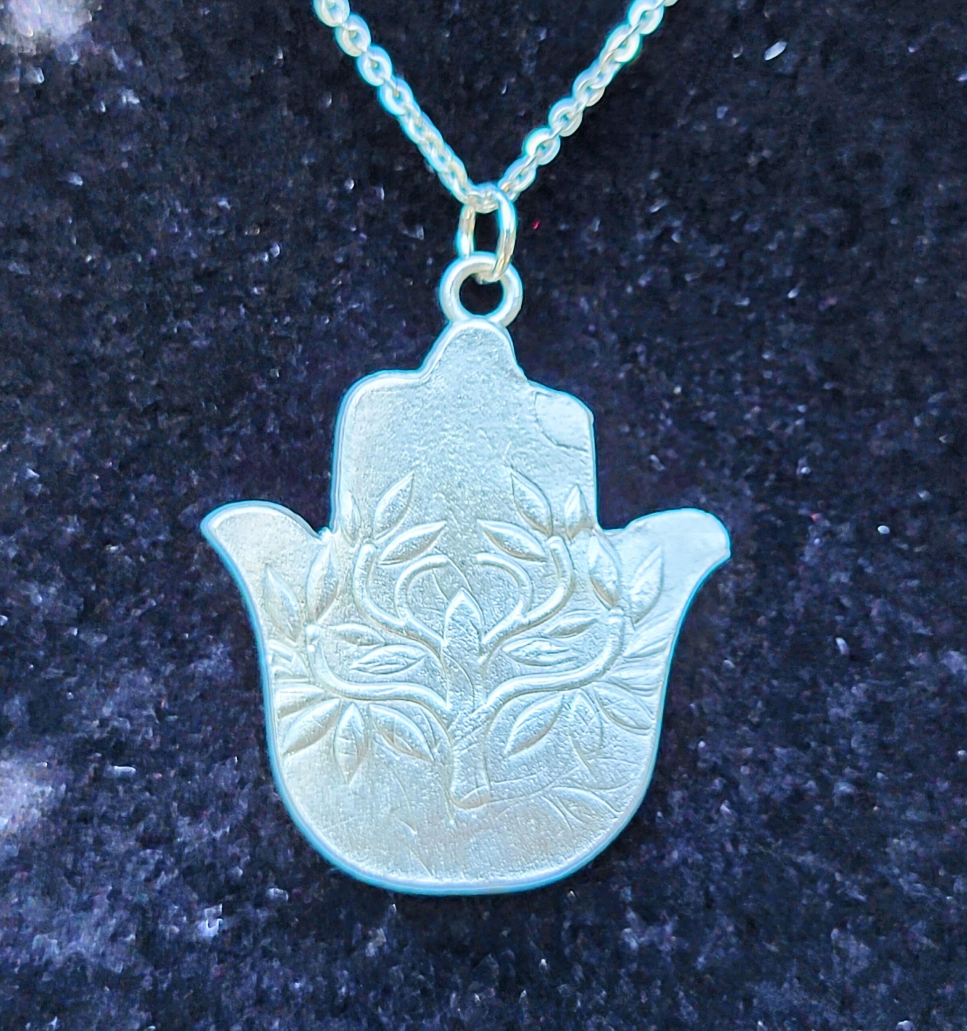This pure silver Hamza pendant is adorned with a Tree of Life design, blending two powerful symbols of protection and renewal. Suspended from an adjustable sterling silver chain, it offers both elegance and versatility, making it a meaningful piece for everyday wear or special occasions.
