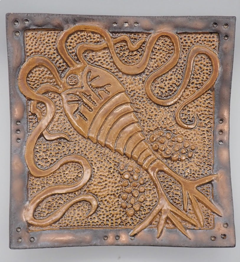 Distinctive and individually designed and hand carved relief and textured Cocoapod Plankton image from nature. This server has small feet which nicely raises it up off of the table.