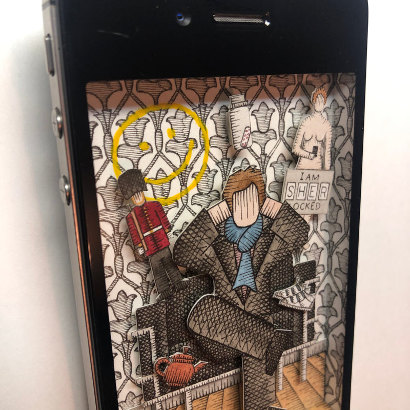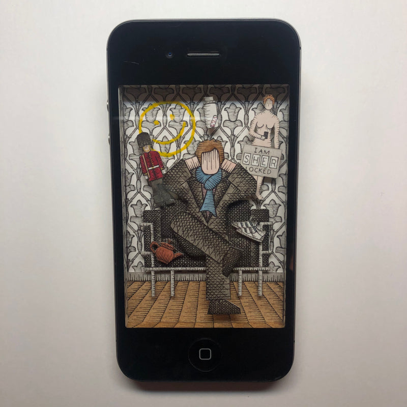 Found the phone on the floor in a bar I was working at. No one ever came to claim. So I made it into art. Waited a long time for the right idea to come forward, but it was worth it.
