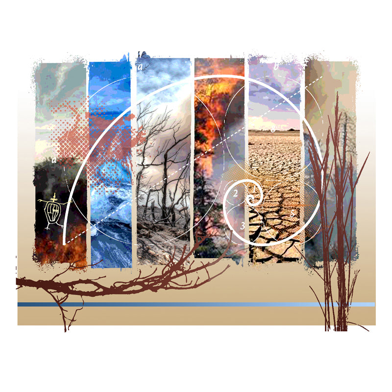 This digital collage is part of a series that explores the raw beauty and power of nature, and humans' futile attempts to quantify & control it.