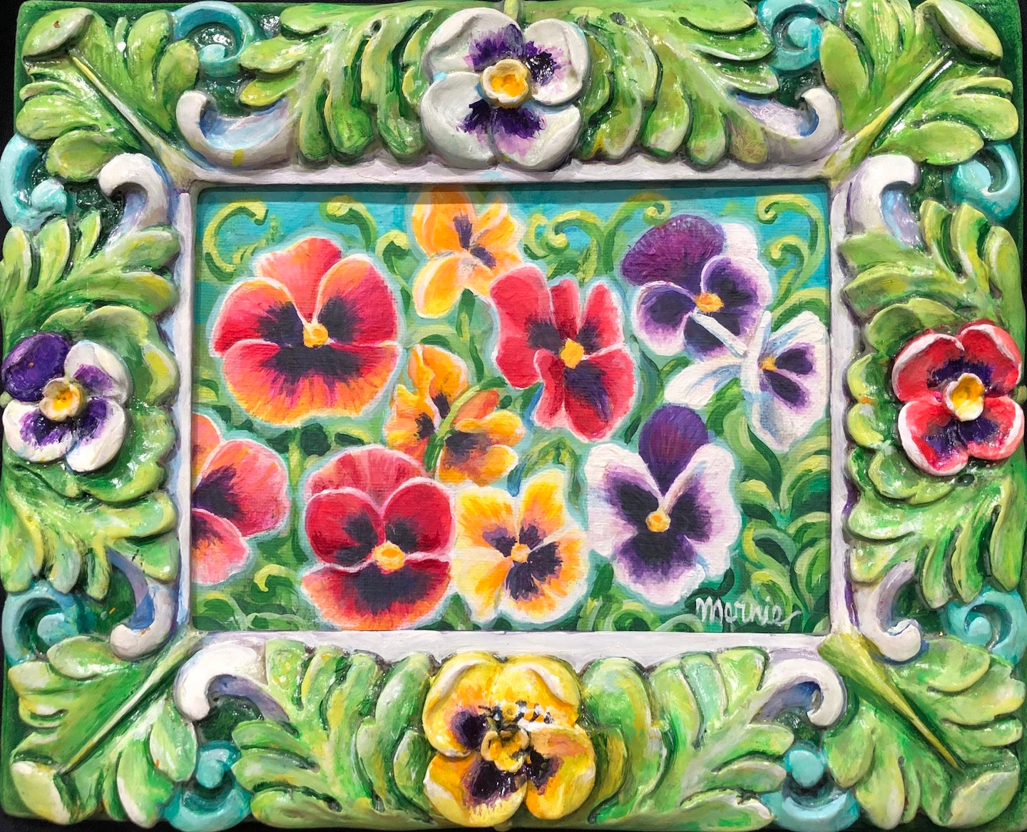 Pansies in France were named for “thought” (pensee) and thoughtfulness. The pansy was said to be charmed, having the magic of telepathy and symbolizing all forms of love from romantic to platonic affection. This cheerful little pansy painting is a thoughtful gift for anyone you love—including yourself! A little bee sips nectar to make honey, which might be the sweetest food for thought.