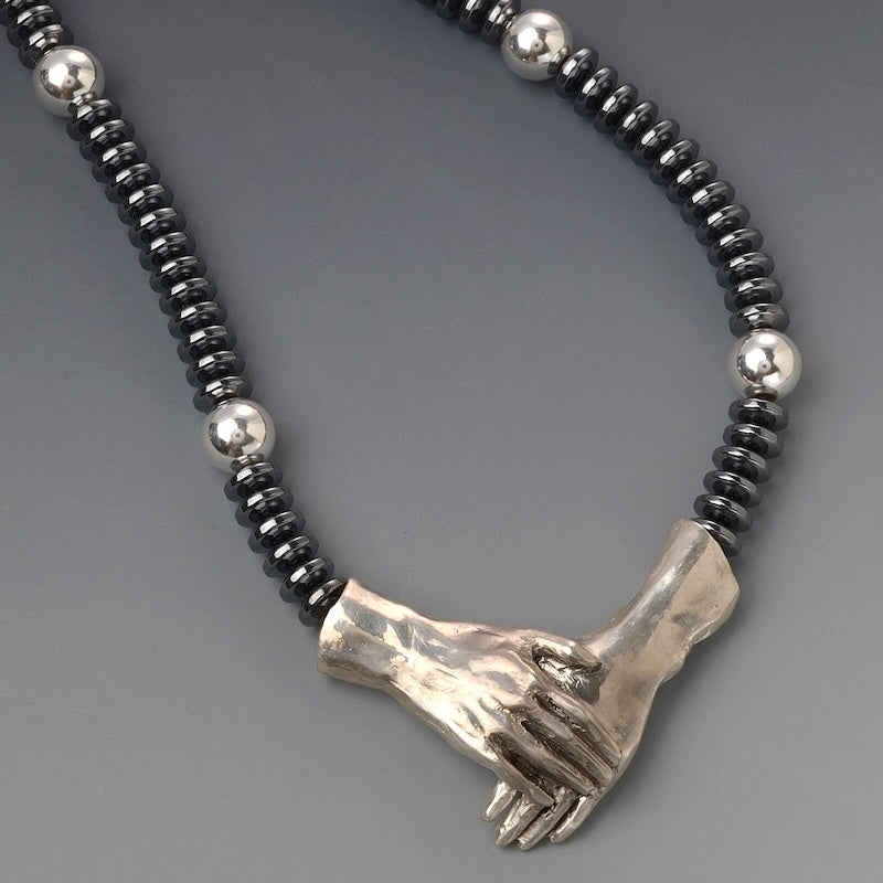 • Sterling Silver Hands presented on 8mm hematite rondels with Sterling Silver 10 mm beads