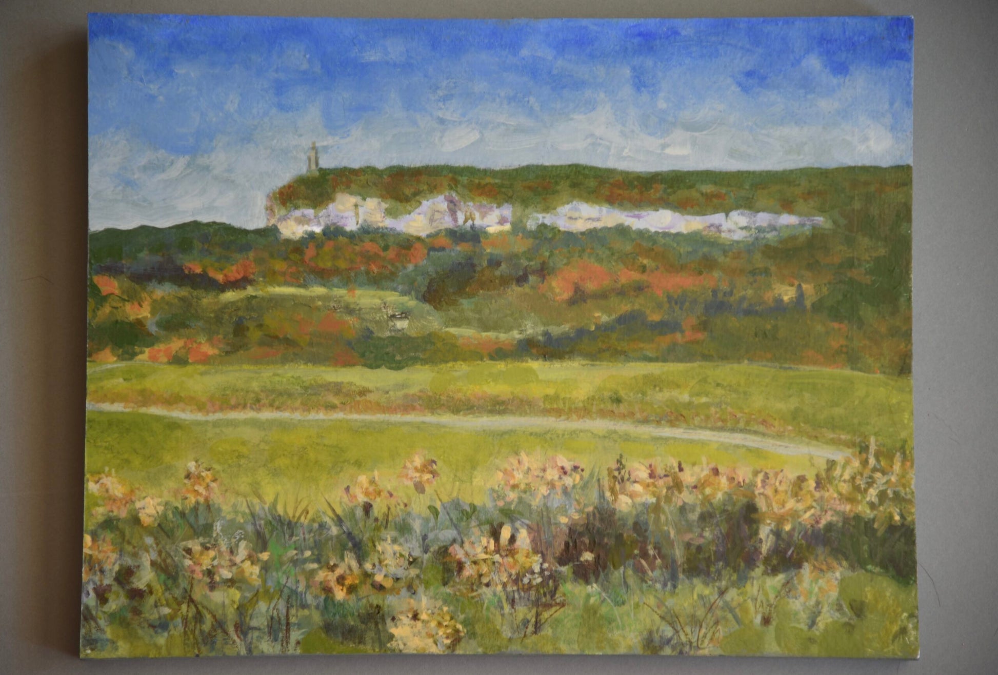 • 11" x 14" Acrylic landscape painting on paper, mounted on a wood cradle panel