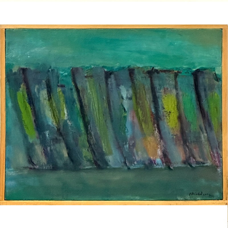 "Shift Left" is a calm statement. The vertical forms suggest a human quality of "presence", almost like a group of people leaning gently but firmly against each other. They are leaning left. And as the title suggests, there's an implied direction or command to move...i.e. "shift left."