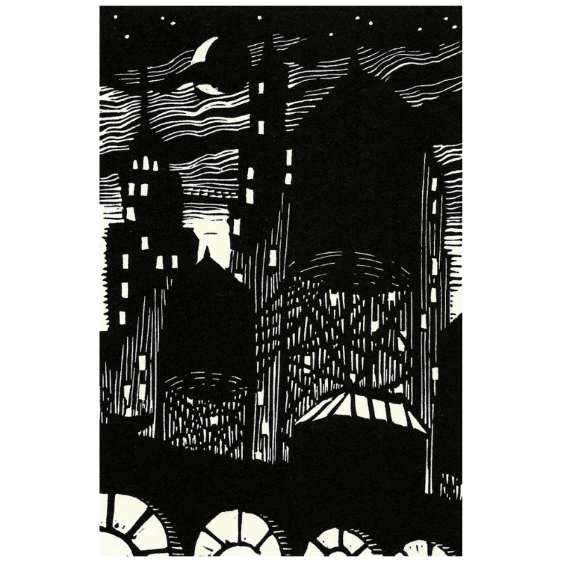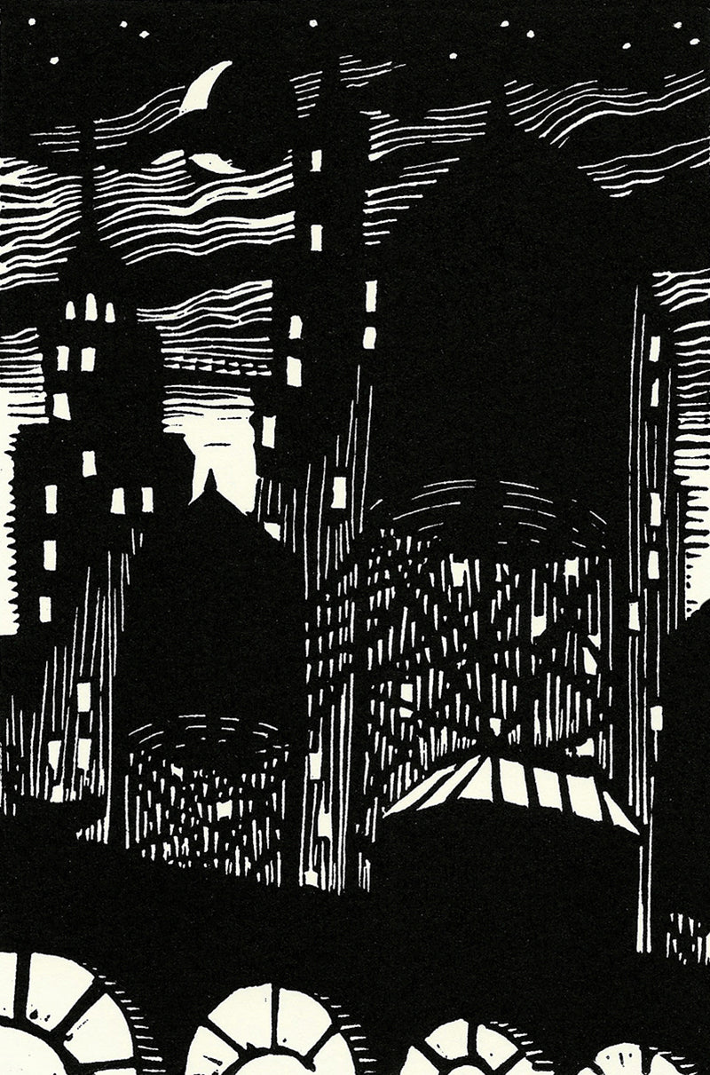 “Skylight” is small, but a largely enchanting portrayal of light not only from the sky silhouetting giant water towers and skyscrapers, but emanating from skylights and lots of lit city windows on a beautiful, clear night.