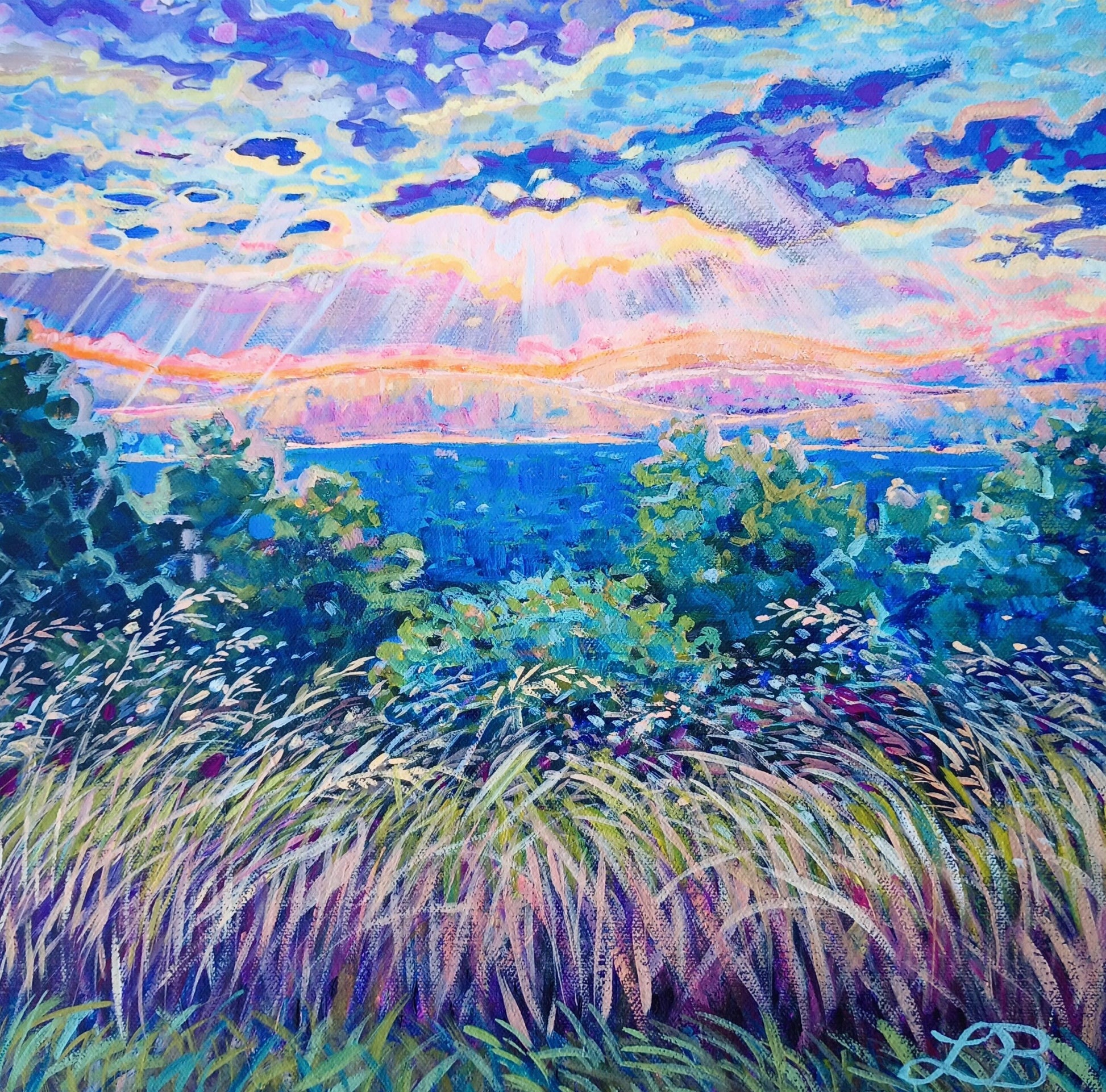 A Sunset over the Rondout Valley from the Mohonk Preserve in late summer: the famous “Million Dollar View." This piece glows with blues, purples, and warm golds.