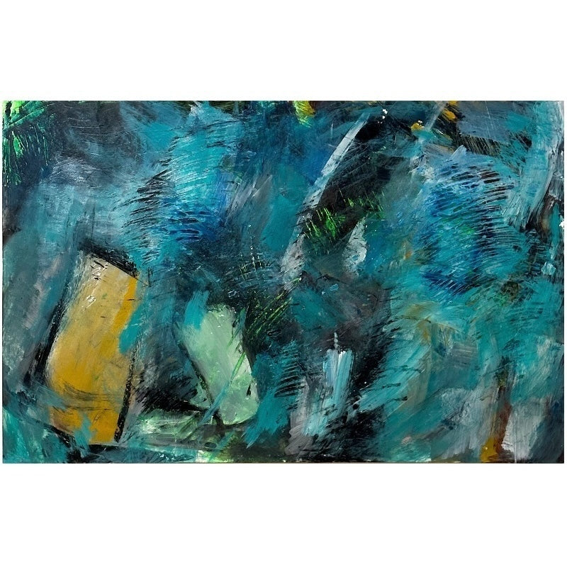 "Swimming Pool #1" is rich in color and palette knife texture. It feels cool, wild, and wet! Its turbulence is inviting.