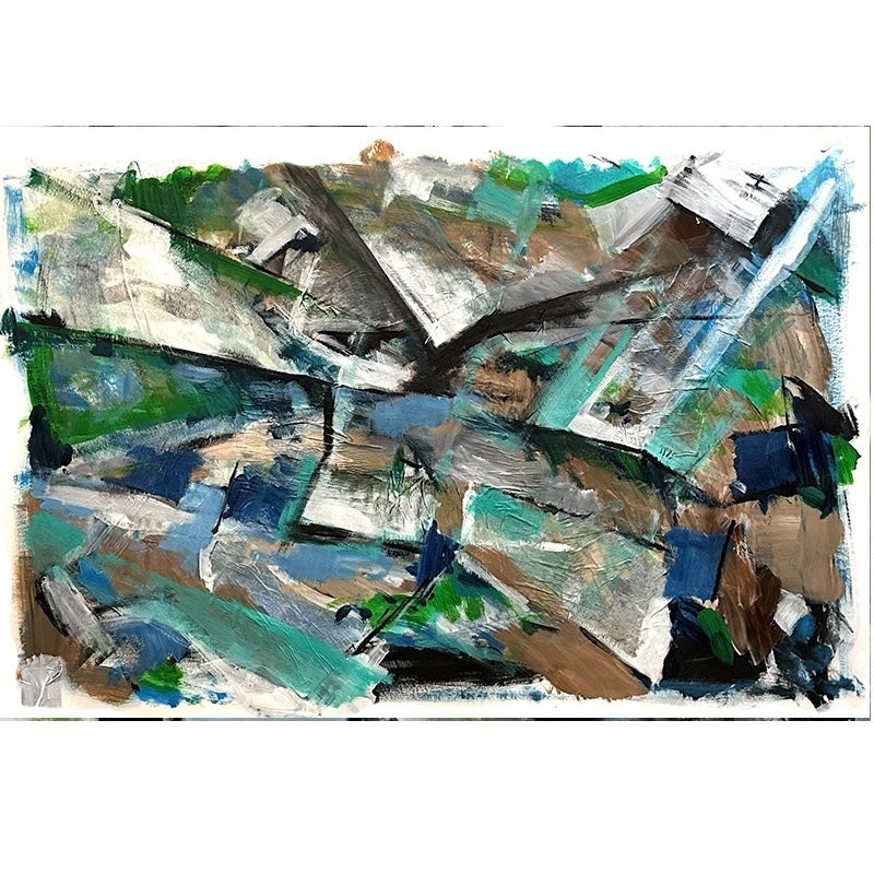 In the previous slide, "Swimming Pool #1" is rich in color and palette knife texture. It feels cool, wild, and wet! Its turbulence is inviting.
