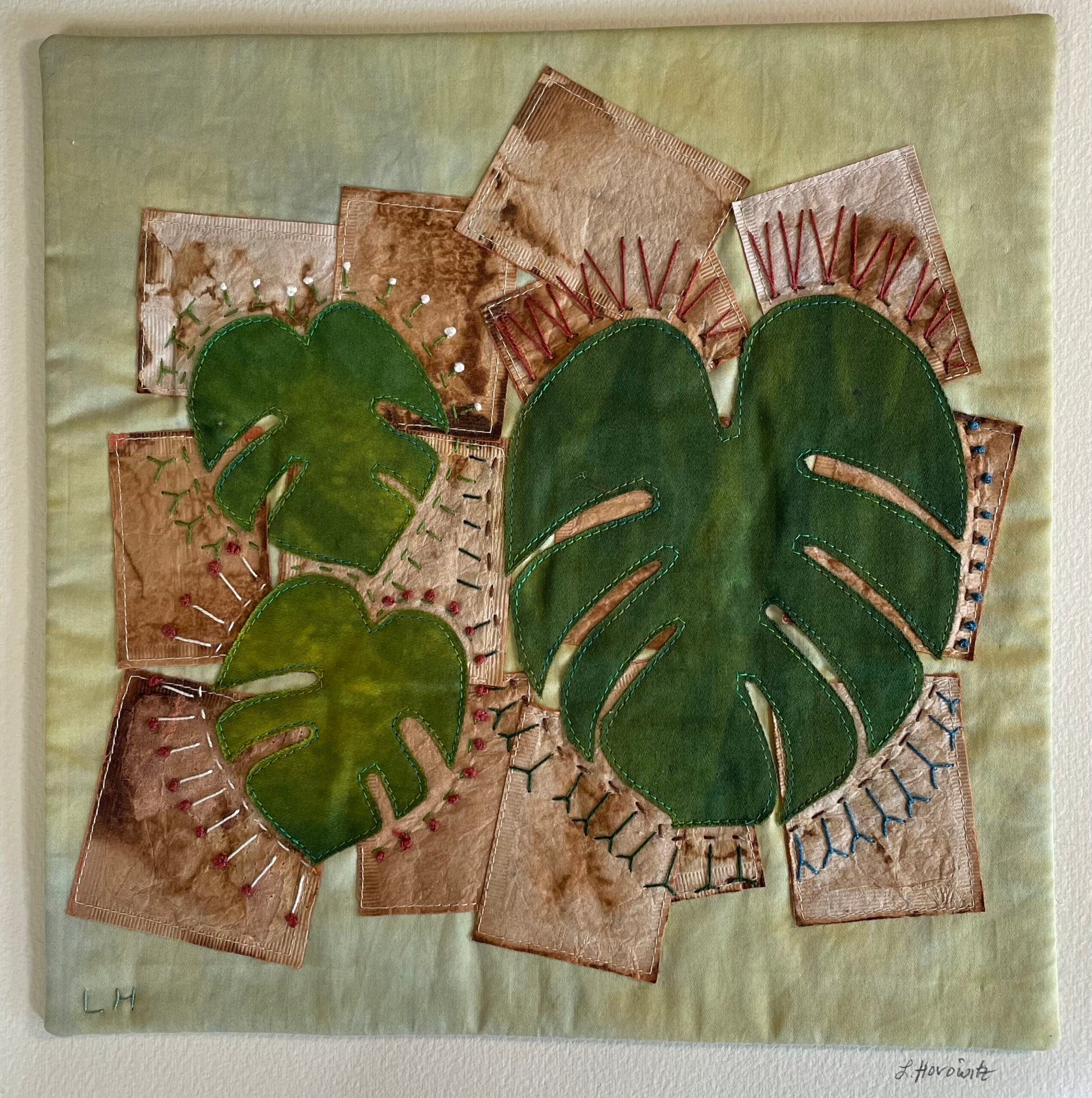 Tropical leaves and real tea bags!! This small piece would make a delightful addition to any home!