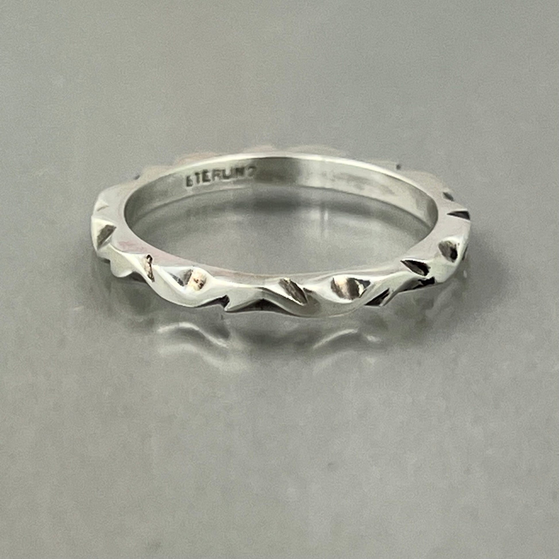 Hand carved sterling silver is formed into a stacker ring, so you can wear as many as you want.